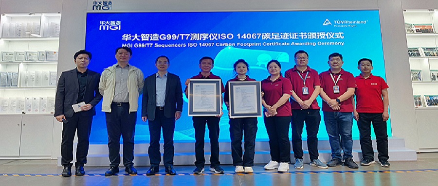近日,華大智造自主研發(fā)的兩款基因測序儀DNBSEQ-G99和DNBSEQ-T7獲得了國際獨立第三方檢測、檢驗和認證機構(gòu)德國萊茵TüV大中華區(qū)(以下簡稱“TüV萊茵”)頒發(fā)的基于ISO 14067標準的產(chǎn)品碳足跡證書,體現(xiàn)了華大智造在溫室氣體排放的量化和管理方面所取得的進展。