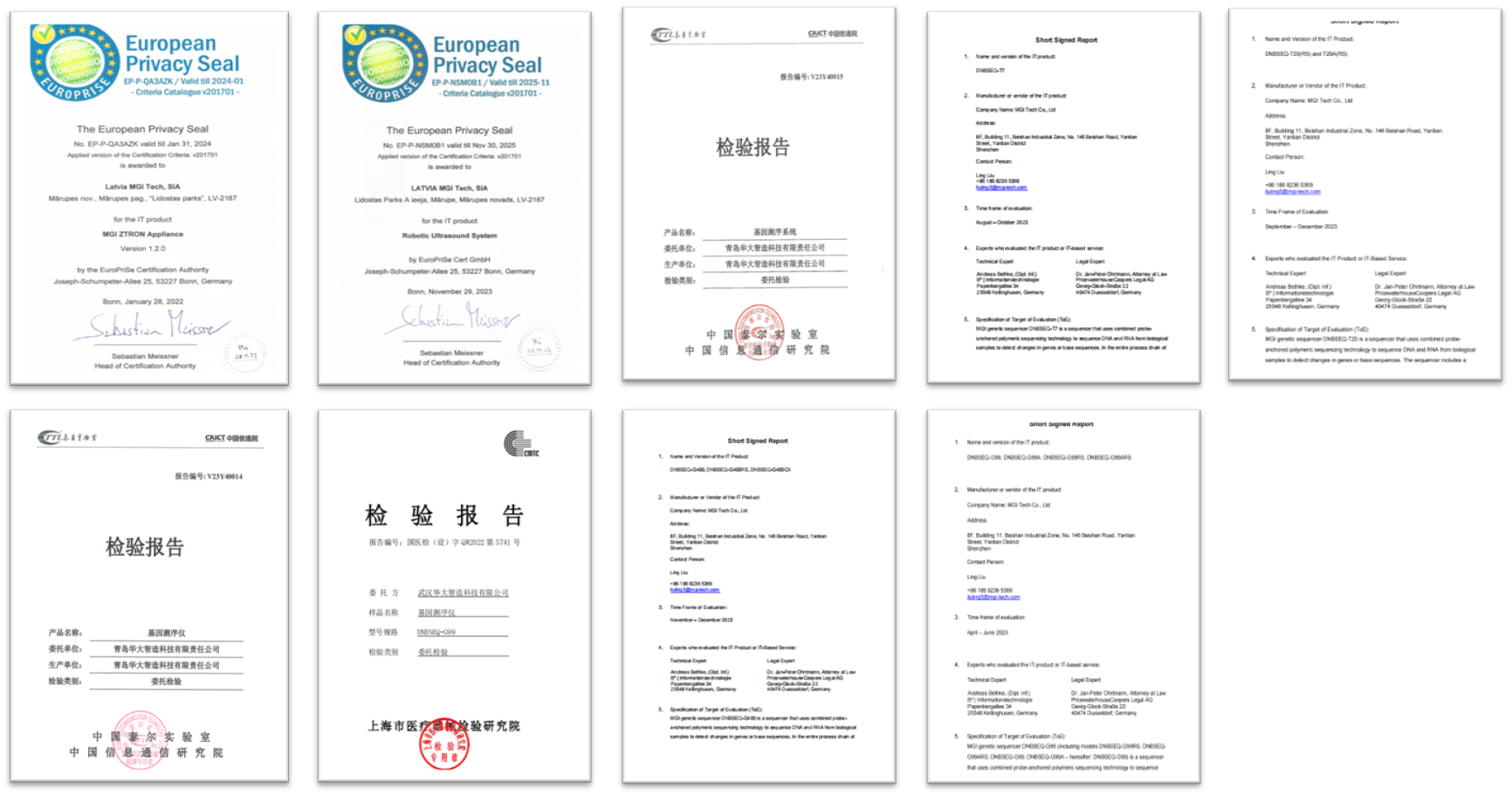 華大智造 ZTRON一體機及遠(yuǎn)程超聲機器人 Robotic Ultrasound System 通過權(quán)威機構(gòu) Europrise 認(rèn)可的標(biāo)準(zhǔn),獲得 European Privacy Seal 認(rèn)證。測序儀 DNBSEQ-G99、DNBSEQ-T20×2、DNBSEQ-T7、MGISEQ-2000 (DNBSEQ-G400) 通過了普華永道德國律師Dr. Jan-Peter Ohrtmann(EuroPriSe Accredited)帶領(lǐng)的法律和技術(shù)團隊的獨立測評,同時通過了中國信息通信研究院的安全檢測,充分展現(xiàn)了產(chǎn)品在數(shù)據(jù)安全與隱私保護方面的強大能力。