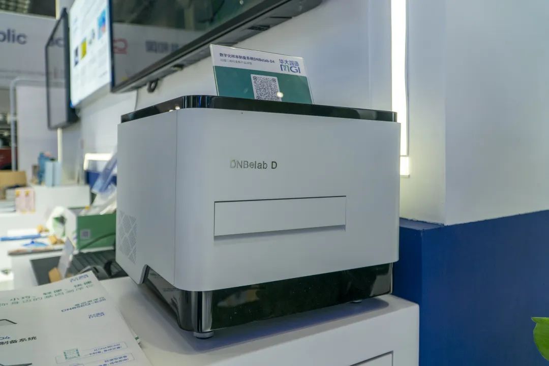 而參展的另外一款數(shù)字化樣本制備系統(tǒng)DNBelab-D4,可以實現(xiàn)在一張樣本制備卡上完成DNA到DNB的全流程制備過程。同時,系統(tǒng)集成定量功能,可在DNB制備完成后進(jìn)行自動定量,無需手工定量。目前,DNBelab-D4數(shù)字化樣本制備系統(tǒng)主要應(yīng)用于未知病原宏基因組測序、新冠溯源測序等高通量測序的文庫制備。