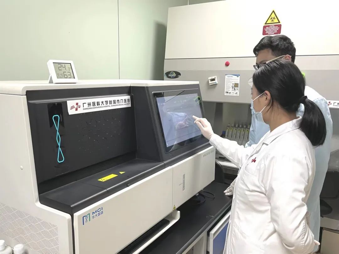廣州市八醫(yī)院工作人員在華大智造MGISEQ-2000上操作新冠樣本測(cè)序早在2021年5月,華大智造啟動(dòng)為廣州市八醫(yī)院提供新冠病毒測(cè)序工具。2021年5月21日至2021年6月18日,廣州市八醫(yī)院共確診159例新冠Delta毒株病例,廣州市八醫(yī)院聯(lián)合廣州醫(yī)科大學(xué)附屬第一醫(yī)院等單位采用華大智造的ATOPlex技術(shù)平臺(tái)和MGISEQ-2000測(cè)序儀的測(cè)序組合產(chǎn)品成功實(shí)現(xiàn)對(duì)新冠Delta病毒全基因組的測(cè)序、比對(duì)、分型和溯源。