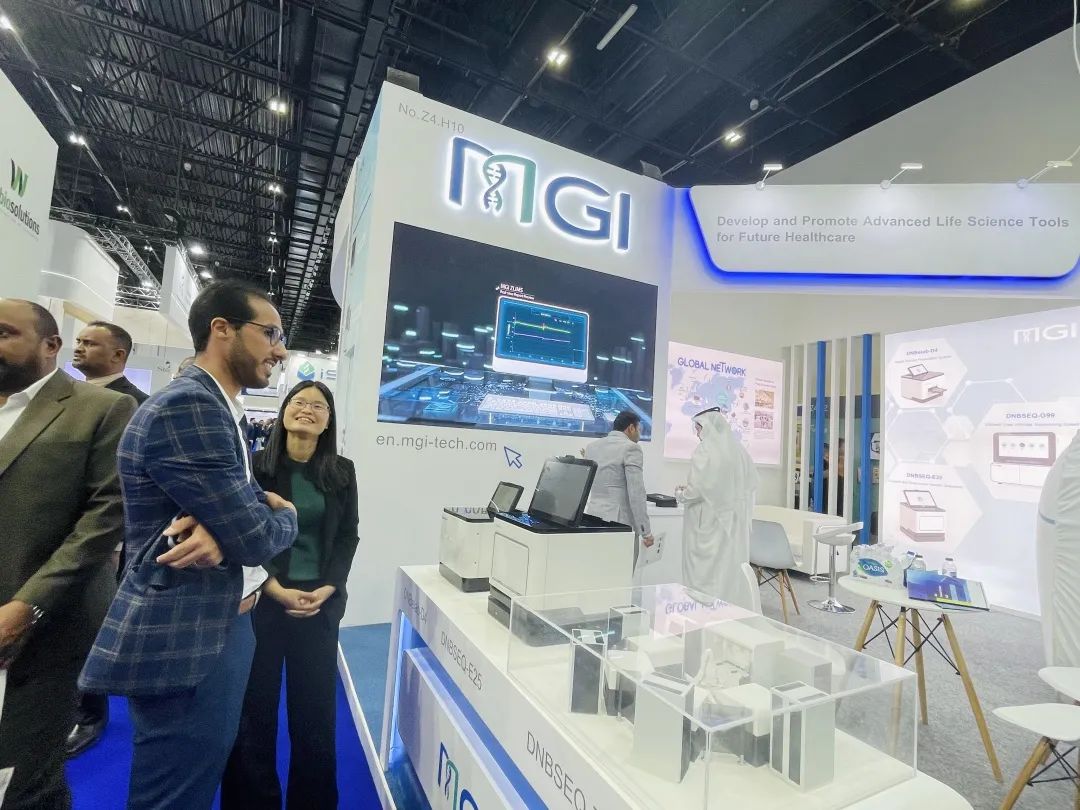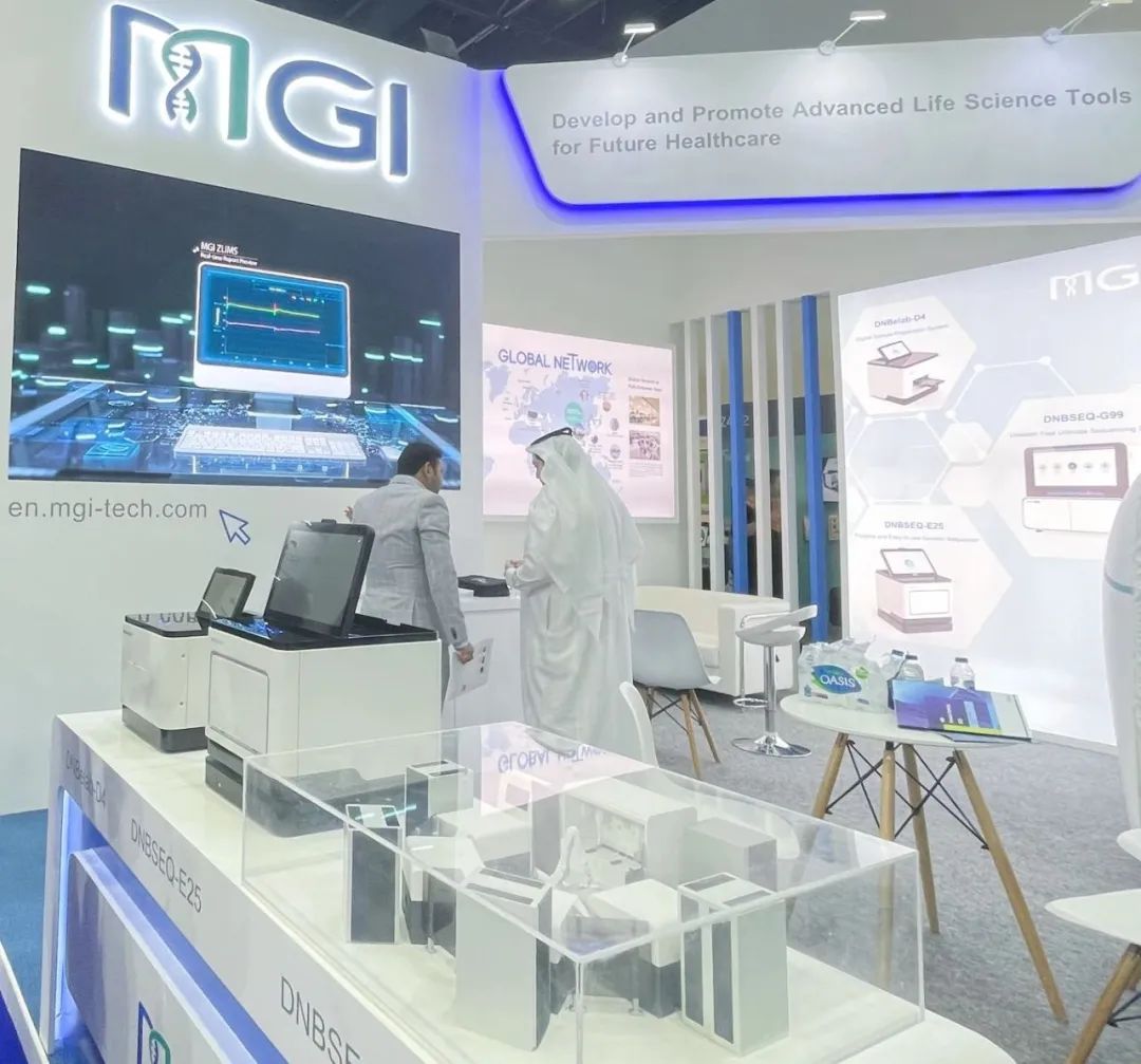 今年是華大智造連續(xù)5年參展MEDLAB,此次華大智造展出了自動(dòng)化樣本制備系統(tǒng)MGISP-100,并攜超高通量基因測(cè)序儀DNBSEQ-T20×2,中小通量基因測(cè)序儀DNBSEQ-G99,小型化基因測(cè)序儀DNBSEQ-E25和數(shù)字化樣本制備系統(tǒng)DNBelab-D4四款產(chǎn)品首次亮相中東地區(qū),旨在為當(dāng)?shù)乜蒲泻歪t(yī)療等領(lǐng)域的應(yīng)用產(chǎn)品和服務(wù)提供更完善和多元化的產(chǎn)品選擇。