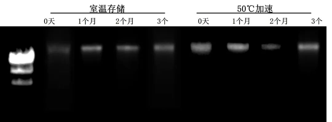 2.唾液樣本分別在室溫和50度下保存一段時(shí)間后,提取的gDNA片段保持完整,無降解。