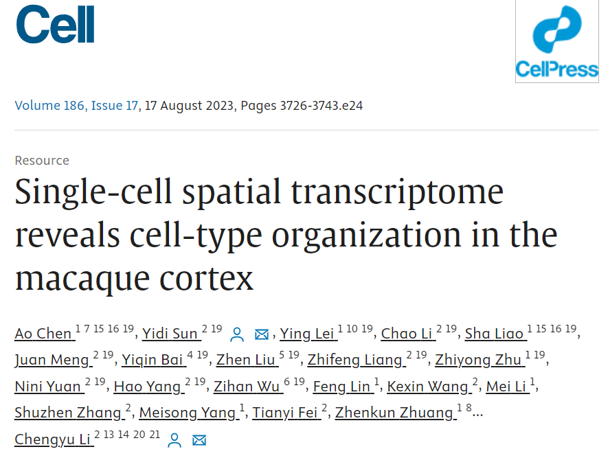 2023年7月,基于華大智造DNBSEQ測序平臺和高通量單細胞核轉錄組測序技術DNBelab C4 snRNA-seq,包括上海腦中心在內的多家單位聯(lián)合攻關,在Cell期刊發(fā)表了題為“Single-cell spatial transcriptome reveals cell-type organization in macaque cortex”的研究論文,其成功繪制了獼猴大腦皮層的細胞類型分類樹,并揭示了細胞類型組成和靈長類腦區(qū)層級結構之間的關系,提供了世界上首個在單細胞分辨率上全面的獼猴整個大腦皮質組織空間轉錄組圖譜,為進一步研究各類神經元之間的連接提供了分子細胞基礎。獼猴大腦皮層細胞圖譜的繪制完成,是人類探索大腦奧秘的里程牌。該成果對于神經科學的重要性,堪比元素周期表之于化學,世界地圖之于地理,人類基因組測序之于生命科學。
