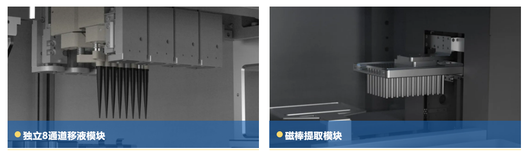 華大智造推出的MGISP-NEX是一款多功能自動(dòng)核酸提取純化儀,配備獨(dú)立8通道移液模塊和靈活可更換的磁棒提取模塊,靈活實(shí)現(xiàn)樣本混合、轉(zhuǎn)移、試劑分裝和反應(yīng)液配置等操作,可真正實(shí)現(xiàn)全流程自動(dòng)化提取,有效解決了上述國(guó)內(nèi)血篩領(lǐng)域中面臨自動(dòng)化提取的難題。